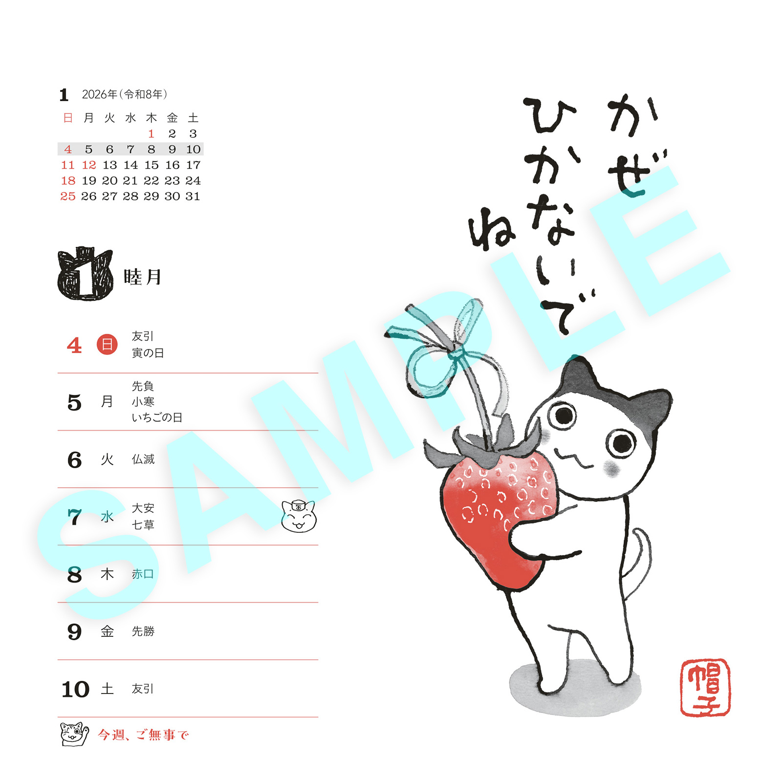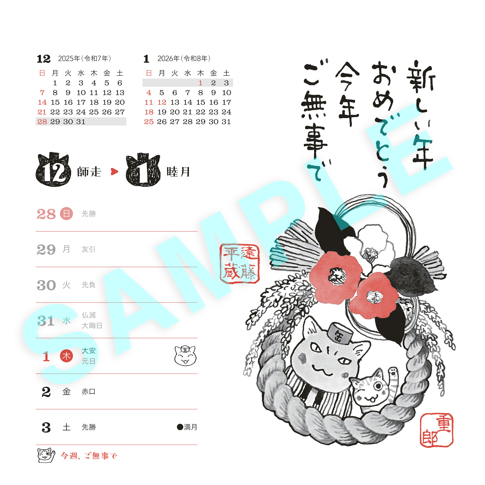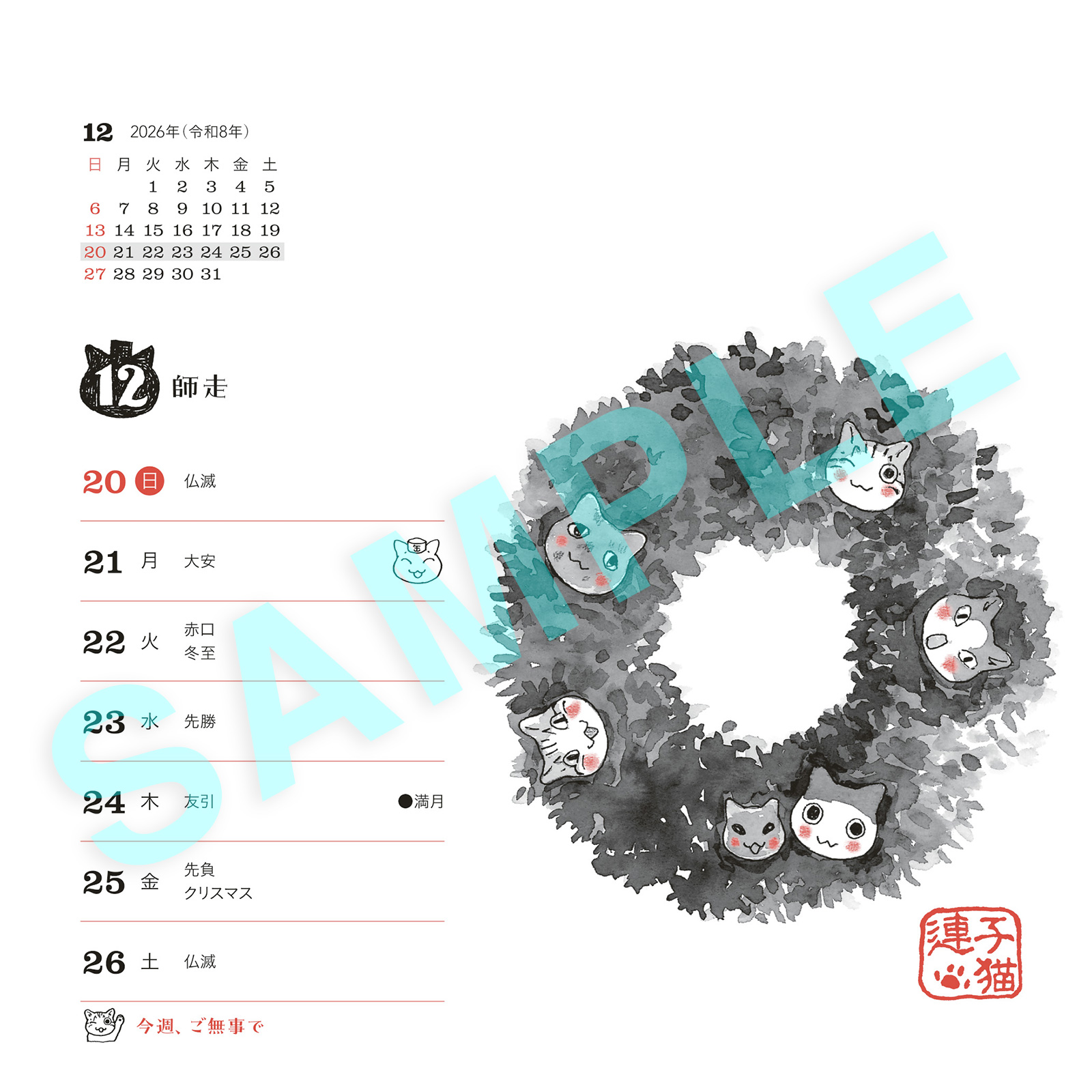 『夜廻り猫2026 卓上週めくりカレンダー』サンプル⑦