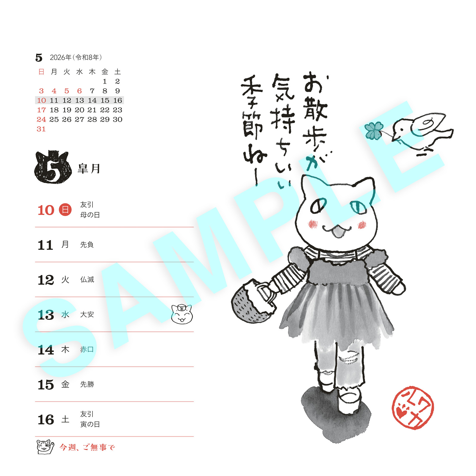 『夜廻り猫2026 卓上週めくりカレンダー』サンプル⑤