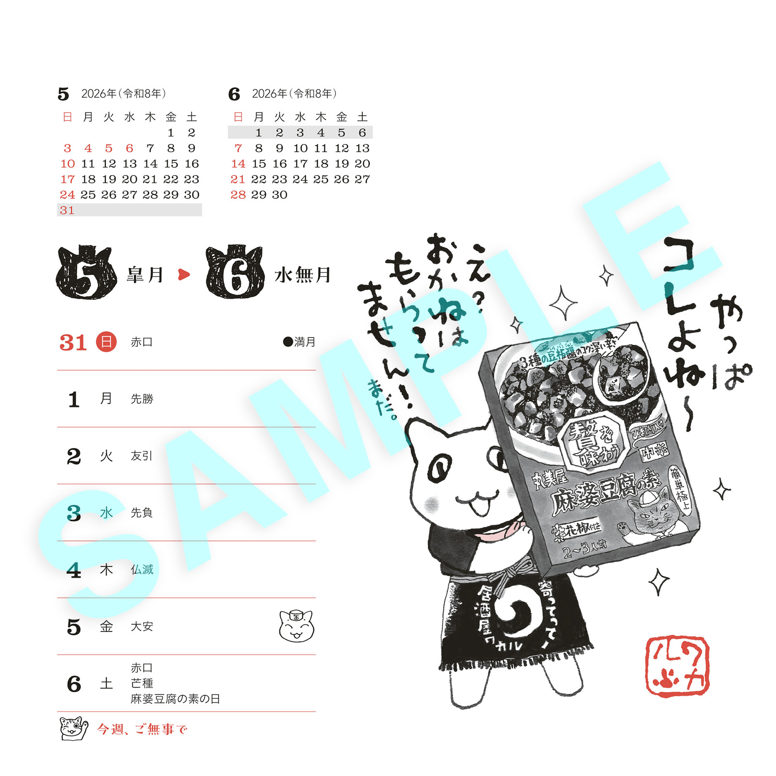 『夜廻り猫2026 卓上週めくりカレンダー』サンプル⑥