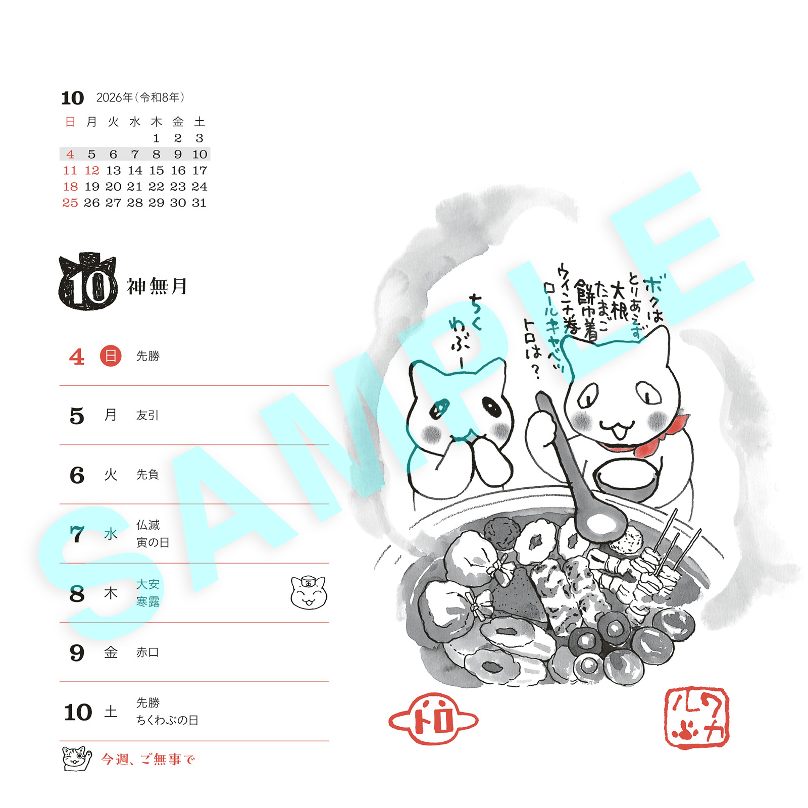 『夜廻り猫2026 卓上週めくりカレンダー』サンプル①