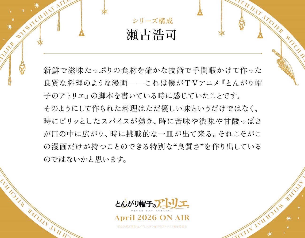 壮麗ハイファンタジー『とんがり帽子のアトリエ』TVアニメ2026年4月放送決定!! ティザーPV・キャラクタービジュアル・メインキャストも一挙解禁