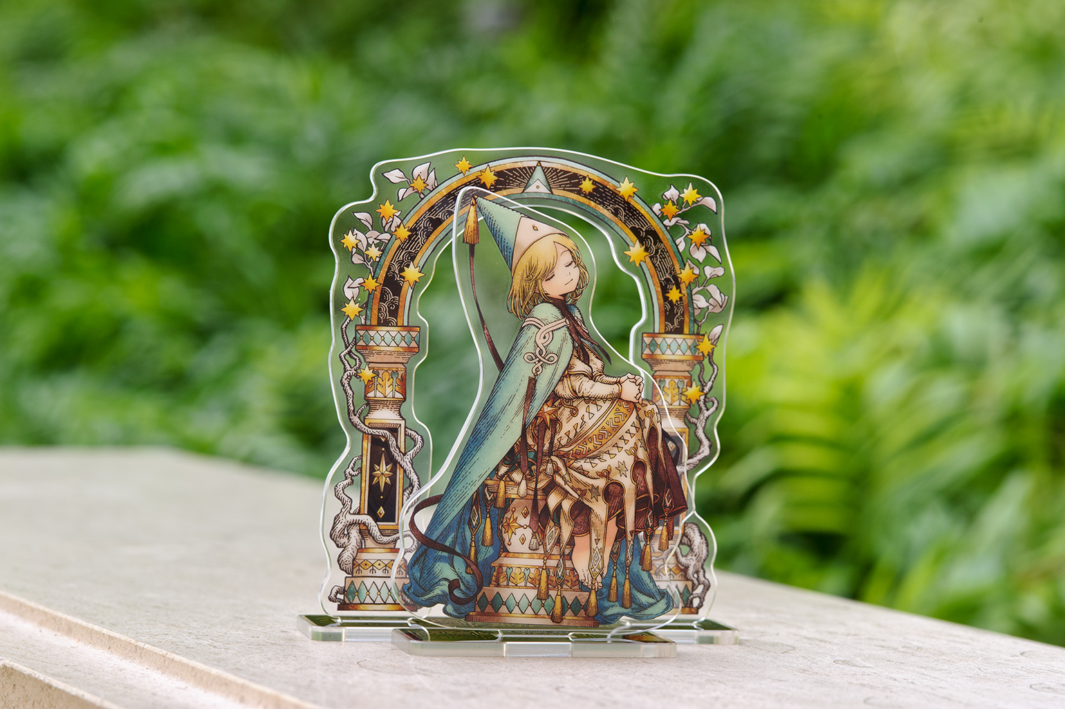主人公ココと、銀葉樹が絡みつく門の背景の2枚セットになっているアクスタは、2つ揃えて飾るのはもちろん、お手持ちの他のアクスタの背景としても使えちゃいます。